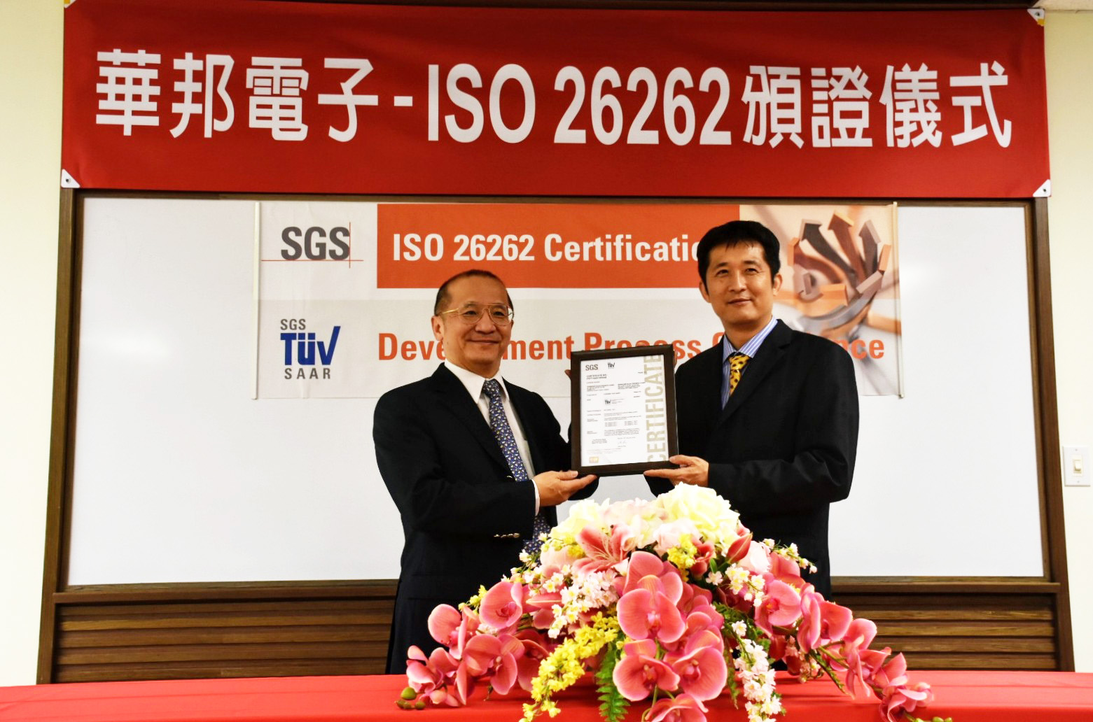 (From left to right-Winbond President,Tung-Yi Chan and SGS Taiwan Vice President,Jack Kuo)
