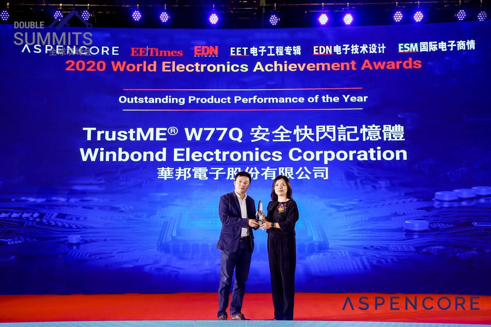 TAICHUNG, Taiwan – November 9, 2020 – Winbond Electronics Corporation, a leading global supplier of semiconductor memory solutions, announced today that TrustME® W77Q Secure Flash has been selected by ASPENCORE analysts and their user community worldwide as one of the winners of 2020 ASPENCORE World Electronics Achievement Awards (WEAA) and received the “Outstanding Product Performance of the Year” award.