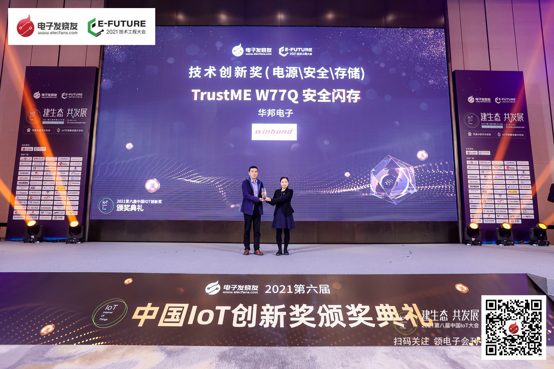 TAICHUNG, Taiwan – 2021-12-13 – Winbond Electronics Corporation, a leading global supplier of semiconductor memory solutions, announced today that TrustME® W77Q Secure Flash has been selected as the winner of 2021 Elecfans IoT Technology Innovation Awards.