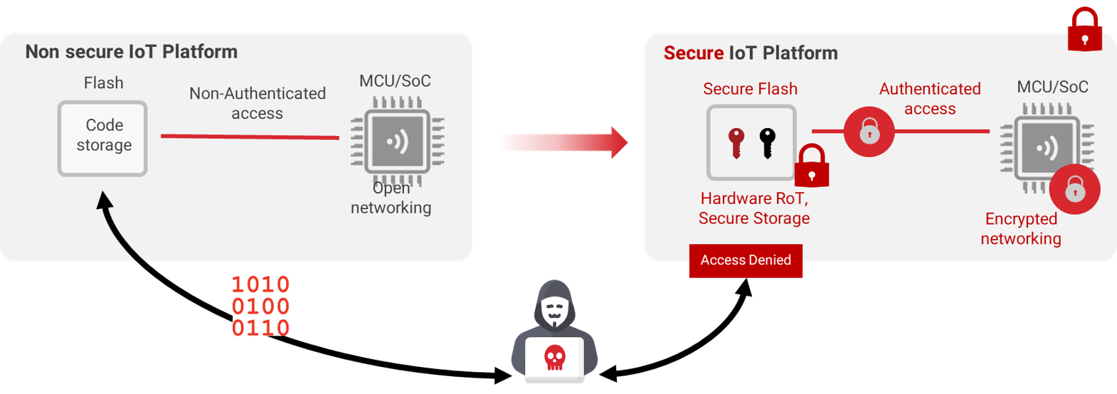 Fig.1: Winbond Secure Flash provides means to protect-against, detect and recover-from unauthorized change of code and critical data stored in the Flash memory.