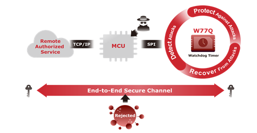 Winbond’s W77Q Secure Flash devices support a hardware-based Root of Trust (RoT), establishing the foundation for a secure boot process. From the moment the system is powered on, the W77Q enables the verification of the initial boot code, forming the first link in a Chain of Trust. This chain extends through to the operating system and ultimately the application code, ensuring each stage is authenticated before execution. By embedding this layered verification mechanism into system architecture, W77Q helps prevent unauthorised