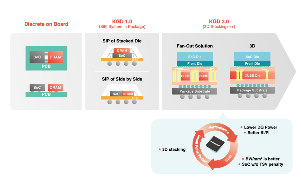 CUBE addresses the shortcomings of conventional memory IC and module solutions through novel approaches to increasing I/O count and raising data speed, support for Through-Silicon Via (TSV) technology as an option, and its 3D architecture that reduces thermal dissipation issues.