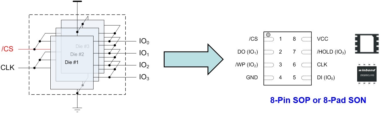 Fig. 3: multiple dies in a SpiStack device may be accommodated in an 8-pin package. (Image credit: Winbond)