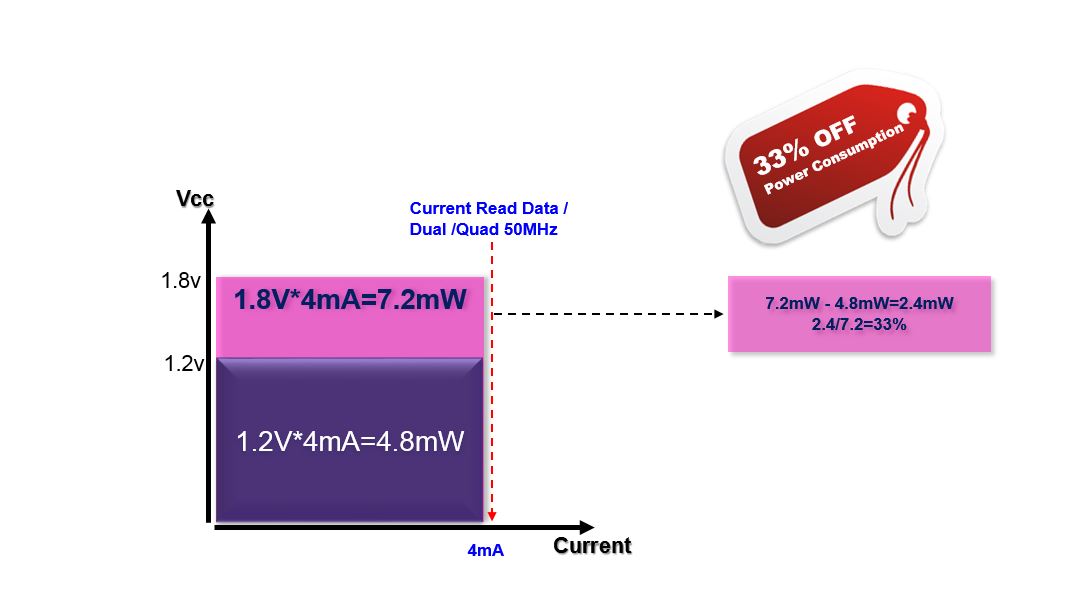 Fig. 2: active power saving provided by 1.2V serial NOR Flash at 50MHz clock speed